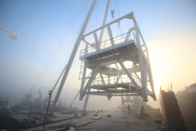 Saltwater werd gecontracteerd om het ontwerp en de sterkteberekeningen van een outrigger frame uit te voeren.